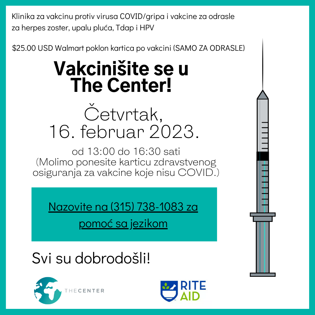 February 16 - COVID/ Flu Vaccine Clinic & Adult Vaccines for Shingles, Pneumonia, DTaP and HPV