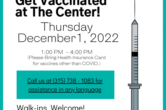 The CDC Community Navigator Program (Partnering for Vaccine Equity) at The Center in partnership with Rite Aid will host a vaccine clinic tomorrow for COVID/ Flu Vaccine Clinic & Adult Vaccines for Shingles, Pneumonia, and HPV.