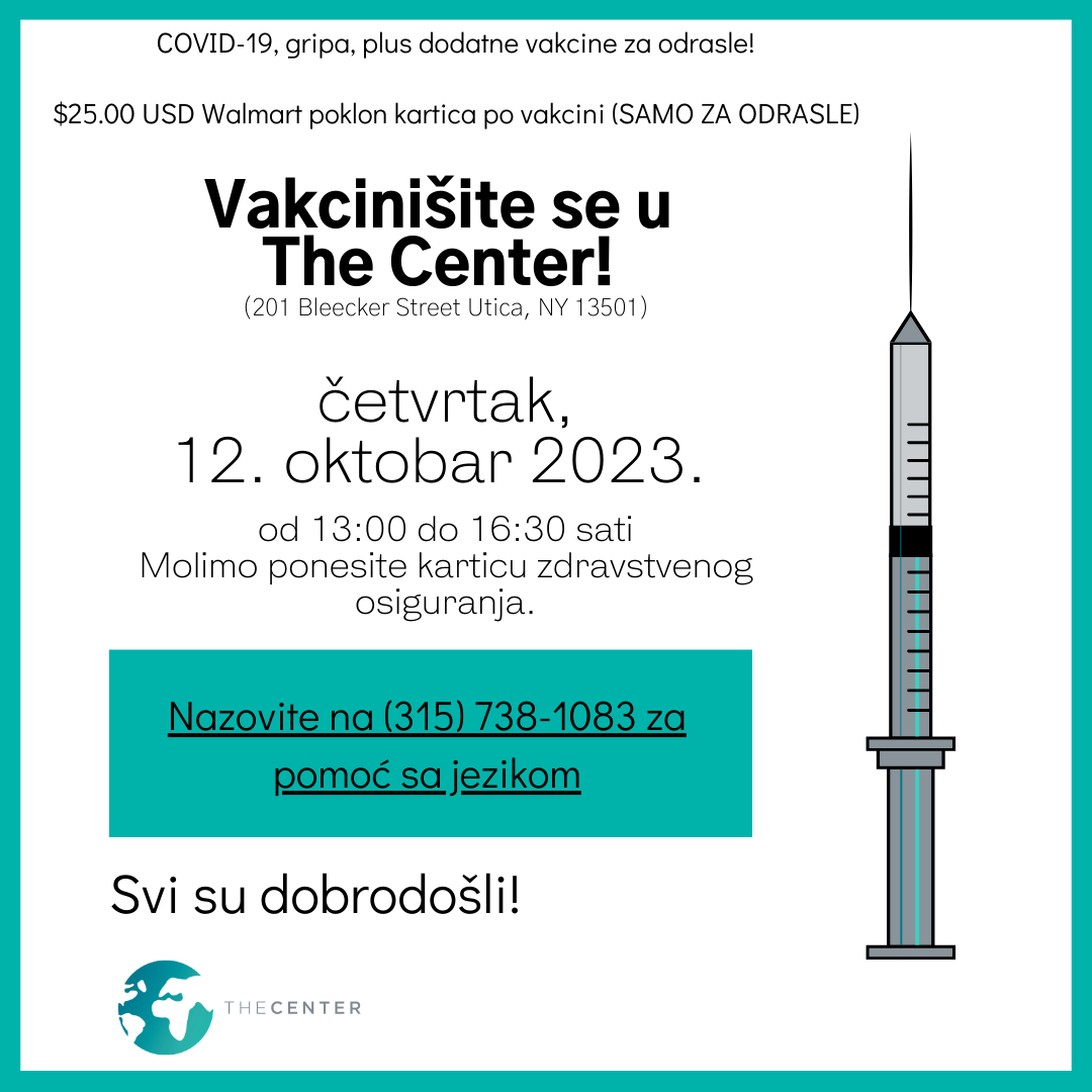 This past Tuesday on September 26th, The Center partnered with the Oneida County Health Department to host a vaccination clinic. We were able to serve 63 patients, including 12 Children who needed vaccines for school.